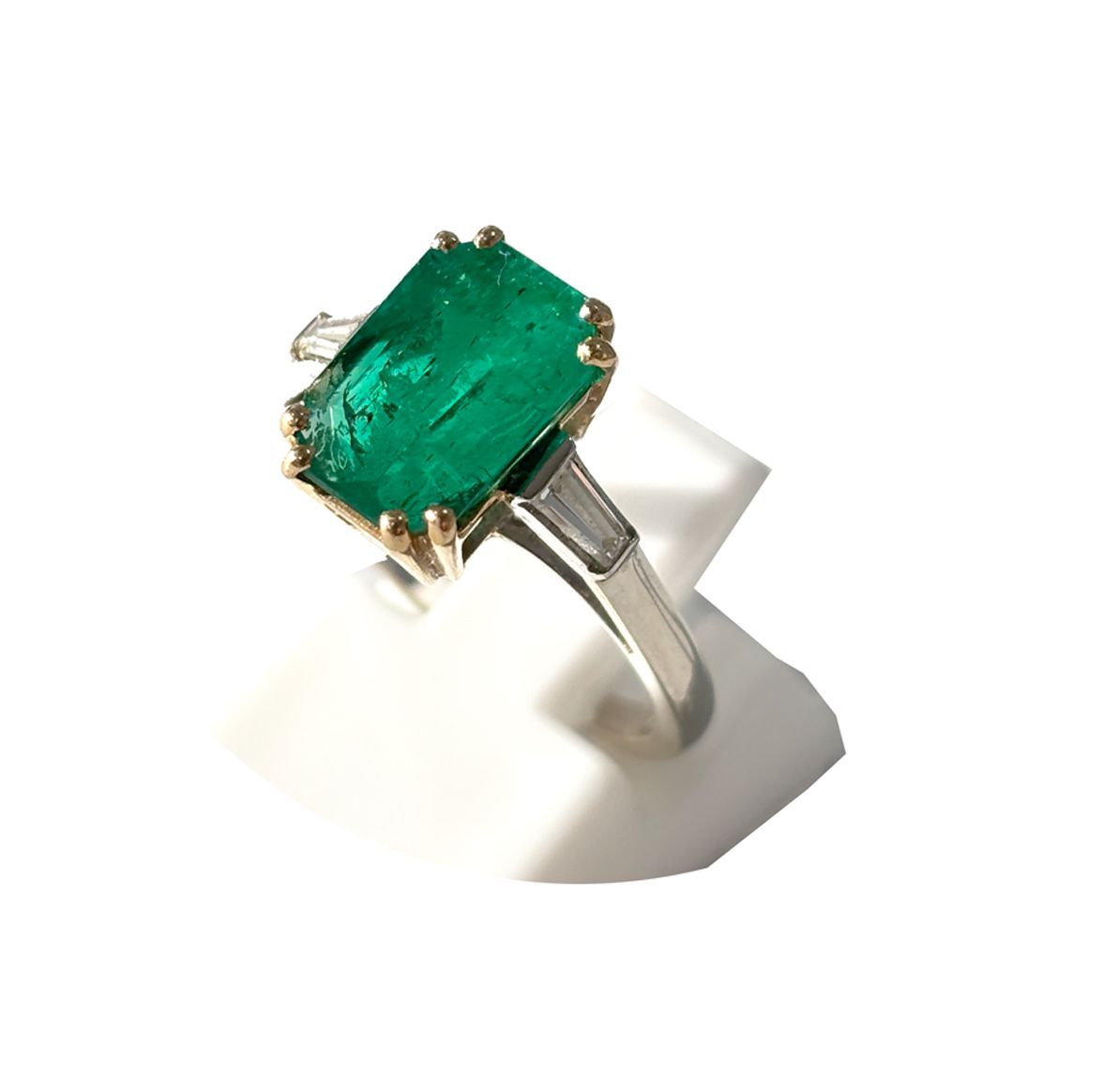 O blanc 18K, diamants, émeraude ovale 1,20 carats
